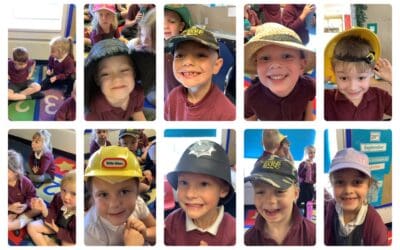 We had a very exciting and mysterious day yesterday. After breaktime we came in to find a trail of hats had been left in the room. We loved trying them on and trying to work out where they had come from.