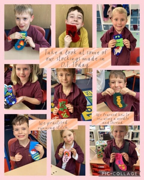 Take a look at some of out sewn stockings from today. We learned how to safely use a needle and a thread. We practised our running stitch skills carefully. It was a little bit tricky but we got the hang of it in the end. We then decorated our stockings by making them personal to us. Thank you to parent volunteers for helping out! We couldn’t have done it without you!