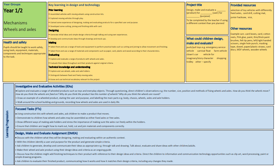 Design Technology spans the curriculum, often supporting and enriching understanding in other subjects, by applying specific design and making knowledge and skills to solve real and relevant practical problems. Design and Technology requires pupils to identify needs, generate design ideas, plan, make, and evaluate. Through well planned tasks, which allow for creativity, pupils learn how to take risks and become resourceful, innovative, enterprising, and capable citizens.