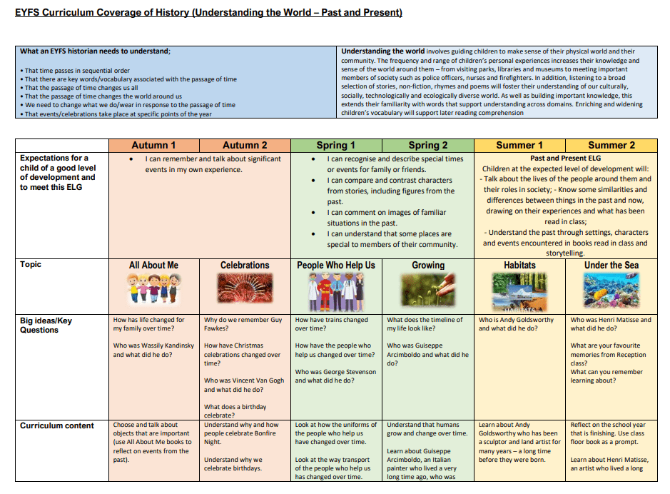 • Foster in children an interest in the past, developing their historical vocabulary to enable them to discuss and interpret events from the past