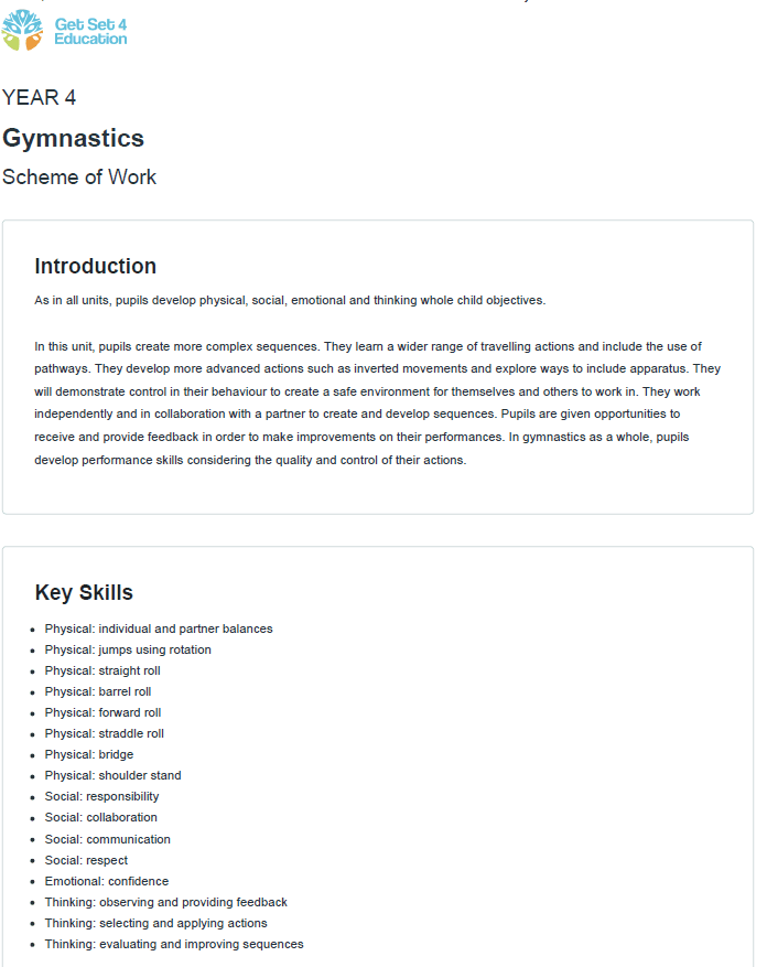 - Pages 8-14: Progression of skills (including SET) by year group.
