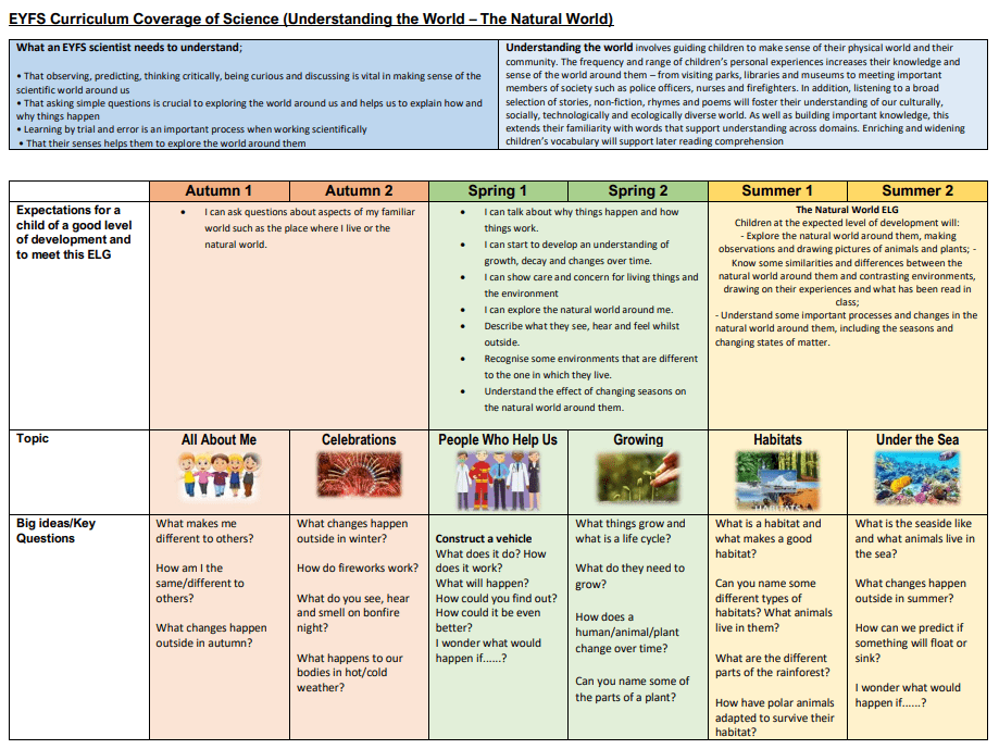 • Pages 5-6: Whole school science overview and enquiry questions.