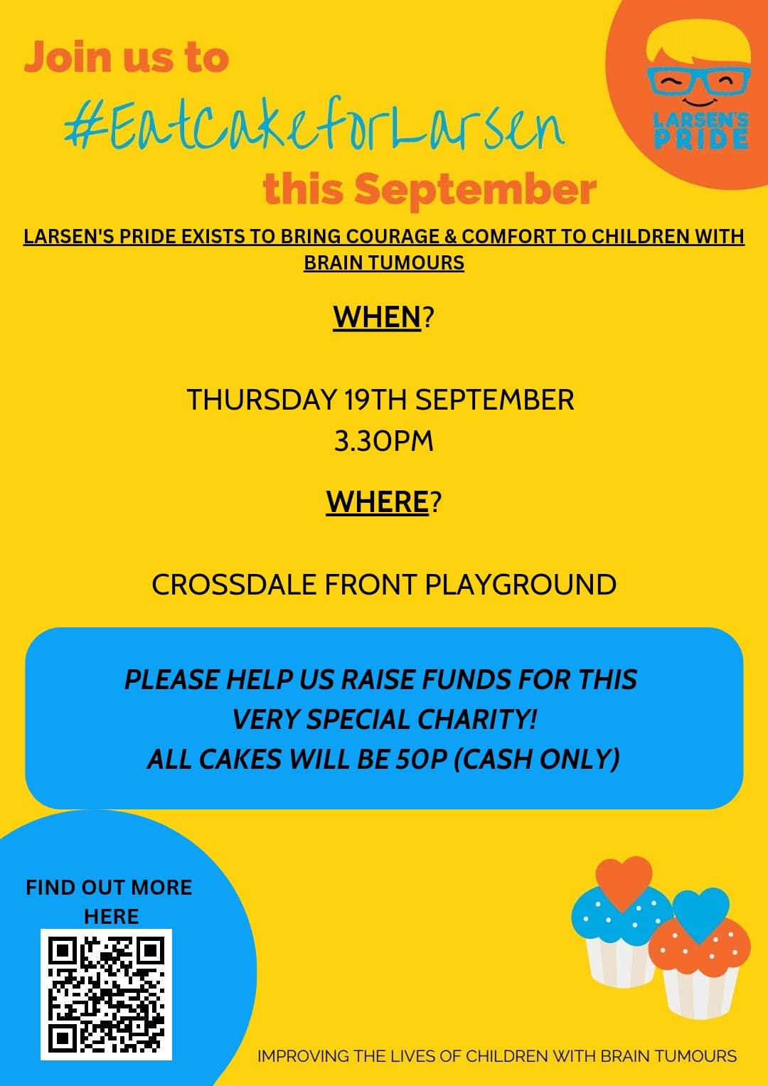 Join us at a cake sale next Thursday, 19th September, on the front playground after school, to raise money for Larsen’s Pride.